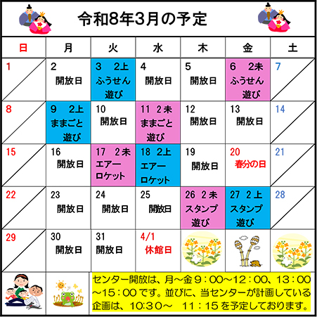 白鳩子育て支援センターだより(活動計画)は、毎月25日前後に公開しています。